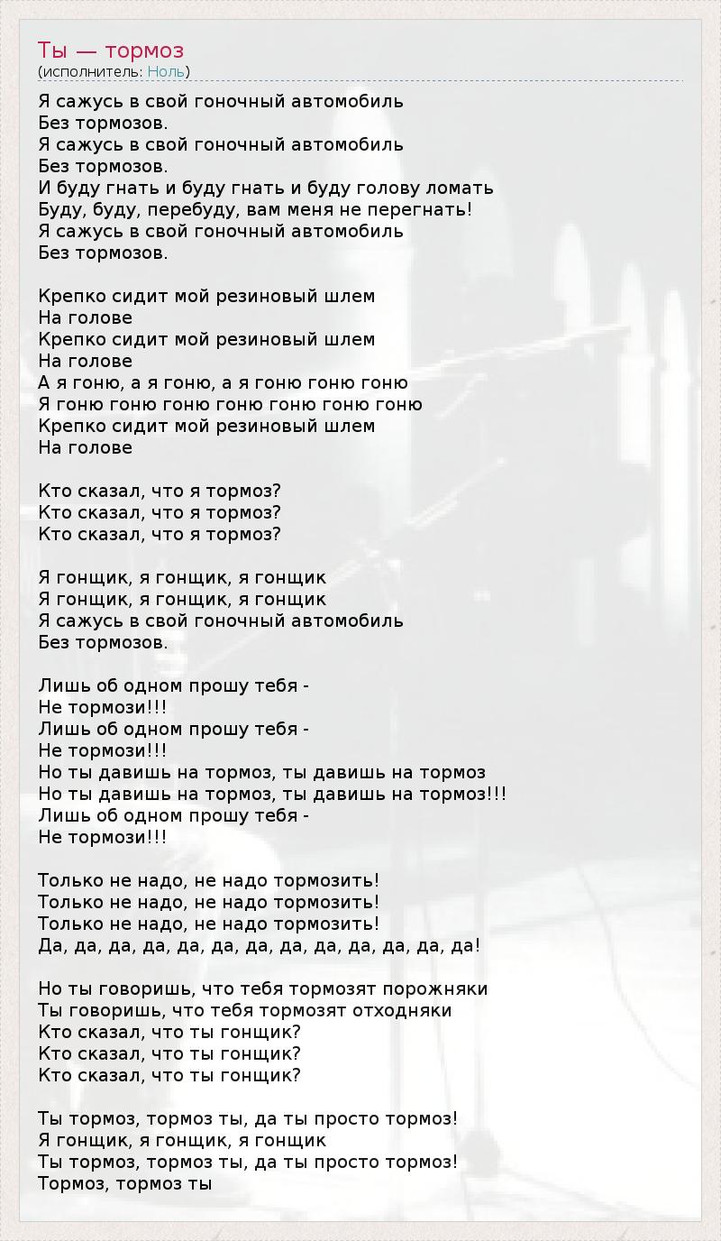 А как ты думаешь, о чем песня "Ты — тормоз" ?