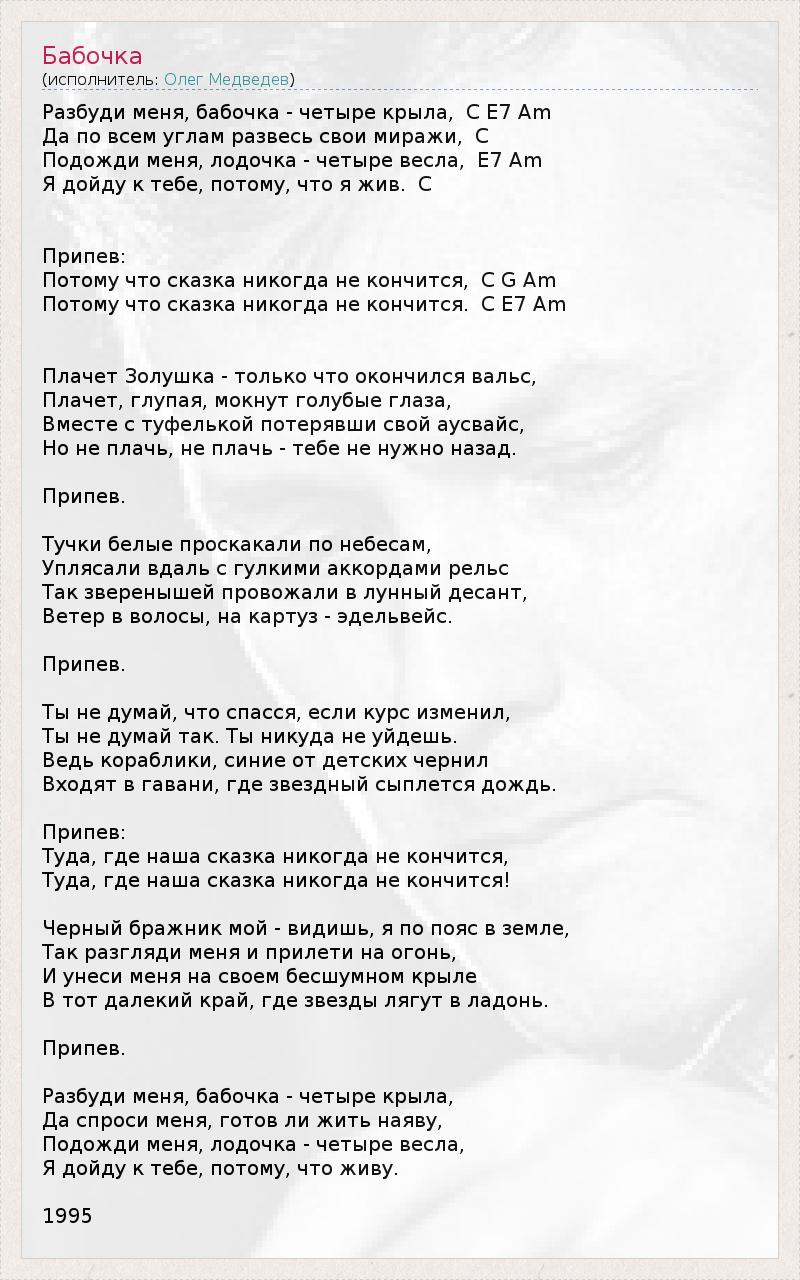 Разбуди меня, бабочка - четыре крыла, 	C E7 Am