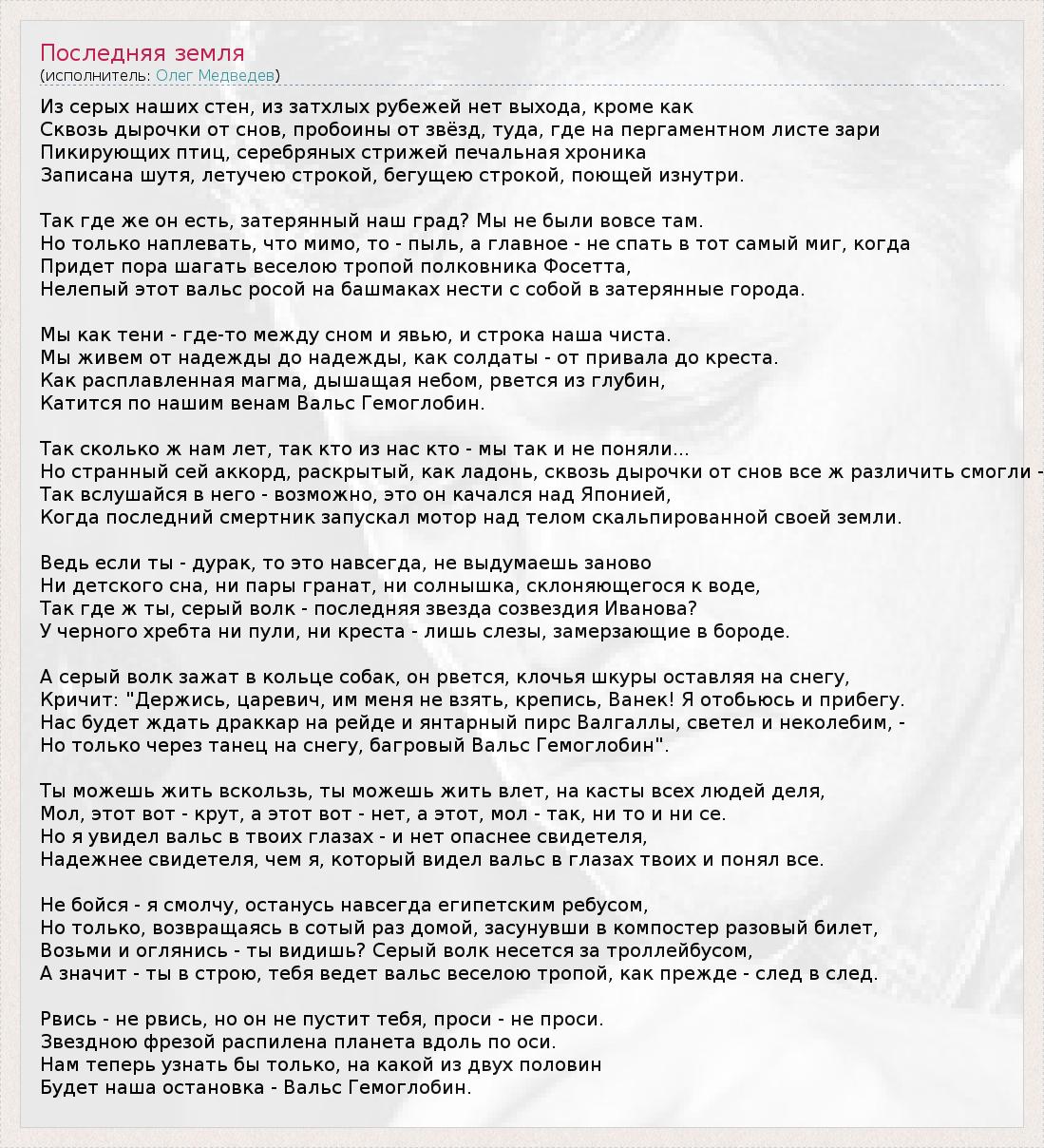А как ты думаешь, о чем песня "Последняя земля" ?