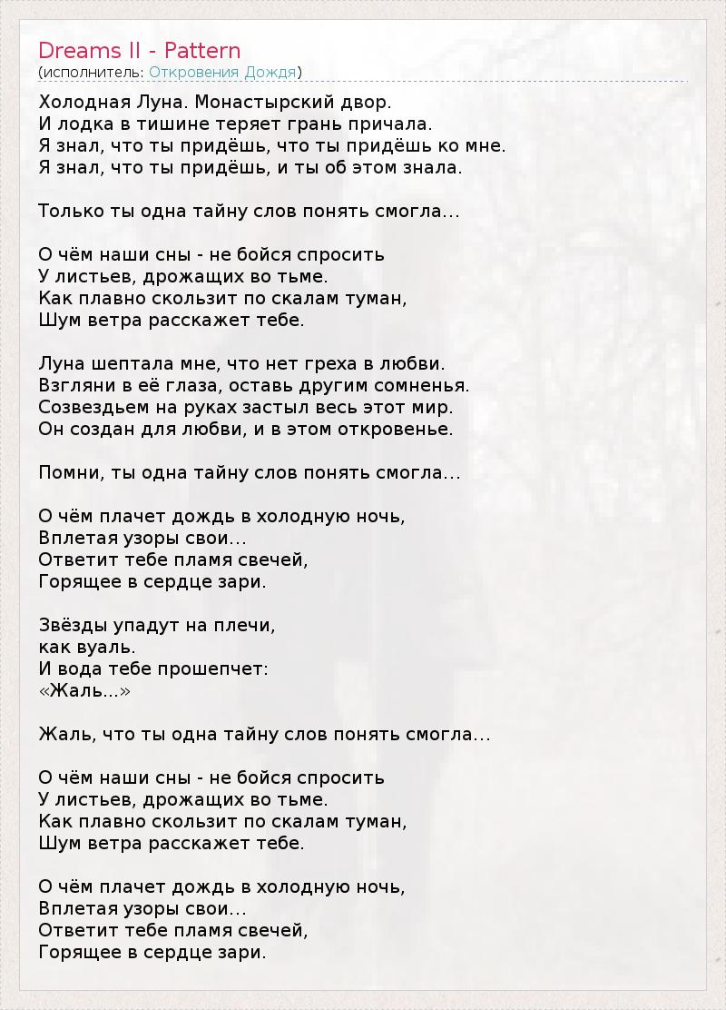 А как ты думаешь, о чем песня "Dreams II - Pattern" ?