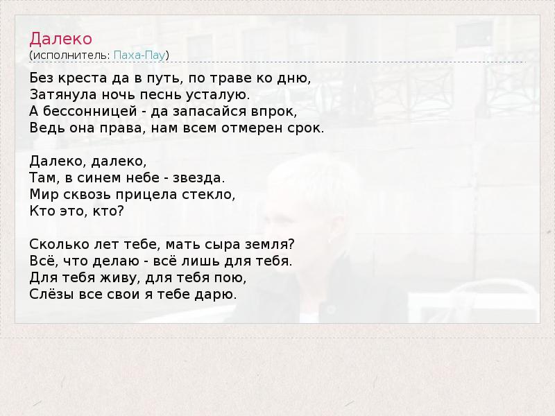 Это интересно:Откровенный взгляд вокалистки группы «Паха-Пау», Марии Фалдиной, не позволит обмануться в ожиданиях и ощущениях от песен. Глаза, как иглубокий, чувственный голос, играют роль передатчика энергетики: от Маши к зрителю, и наоборот. Главным текстовиком группы является Дмитрий Исаев (гитара), один из основателей «Паха-Пау». Каждая его работа поражает точностью восприятия женской натурой... продолжение