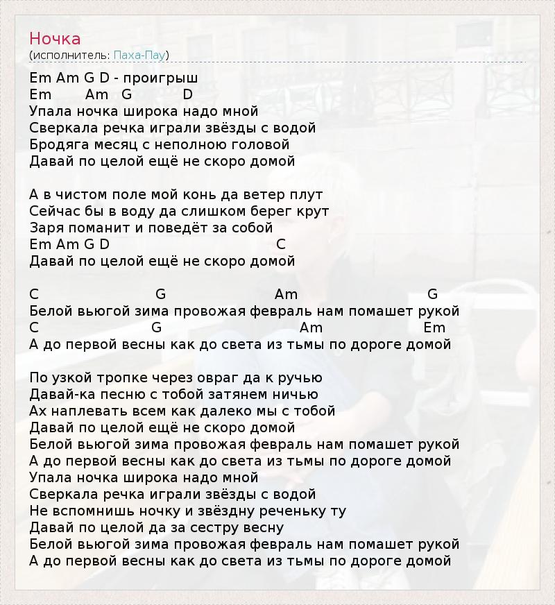 Это интересно:Откровенный взгляд вокалистки группы «Паха-Пау», Марии Фалдиной, не позволит обмануться в ожиданиях и ощущениях от песен. Глаза, как иглубокий, чувственный голос, играют роль передатчика энергетики: от Маши к зрителю, и наоборот. Главным текстовиком группы является Дмитрий Исаев (гитара), один из основателей «Паха-Пау». Каждая его работа поражает точностью восприятия женской натурой... продолжение