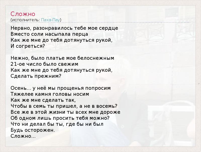 Это интересно:Откровенный взгляд вокалистки группы «Паха-Пау», Марии Фалдиной, не позволит обмануться в ожиданиях и ощущениях от песен. Глаза, как иглубокий, чувственный голос, играют роль передатчика энергетики: от Маши к зрителю, и наоборот. Главным текстовиком группы является Дмитрий Исаев (гитара), один из основателей «Паха-Пау». Каждая его работа поражает точностью восприятия женской натурой... продолжение