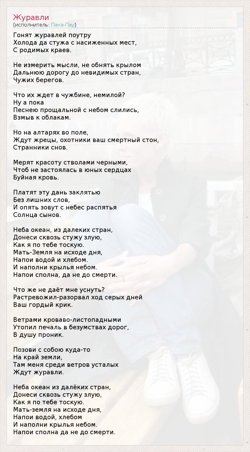 Это интересно:Откровенный взгляд вокалистки группы «Паха-Пау», Марии Фалдиной, не позволит обмануться в ожиданиях и ощущениях от песен. Глаза, как иглубокий, чувственный голос, играют роль передатчика энергетики: от Маши к зрителю, и наоборот. Главным текстовиком группы является Дмитрий Исаев (гитара), один из основателей «Паха-Пау». Каждая его работа поражает точностью восприятия женской натурой... продолжение