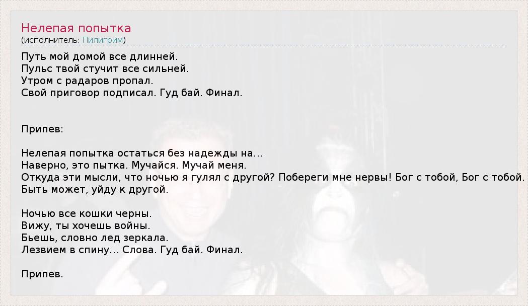 ГлавнаяИсполнителиПилигримНелепая попытка