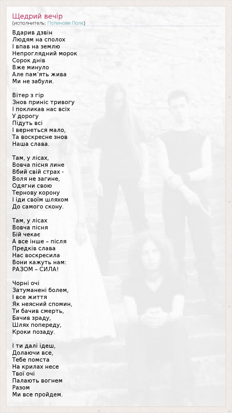 А как ты думаешь, о чем песня "Щедрий вечір" ?