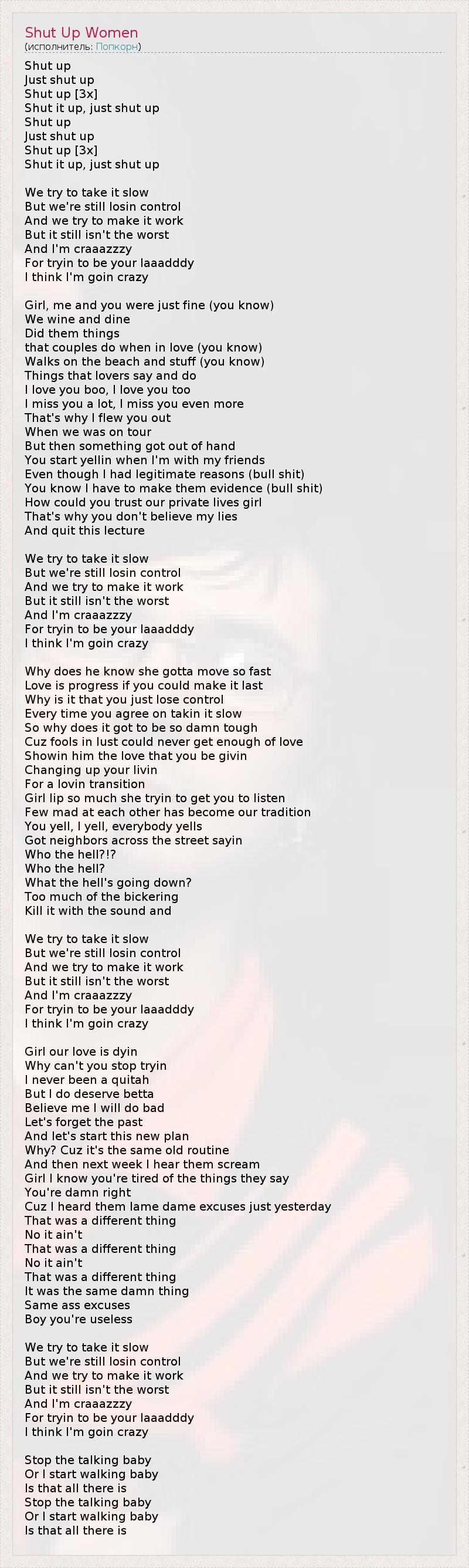 А как ты думаешь, о чем песня "Shut Up Women" ?