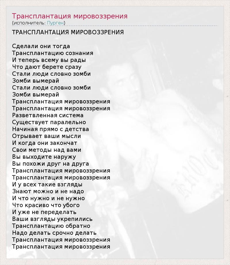 А как ты думаешь, о чем песня "Трансплантация мировоззрения" ?