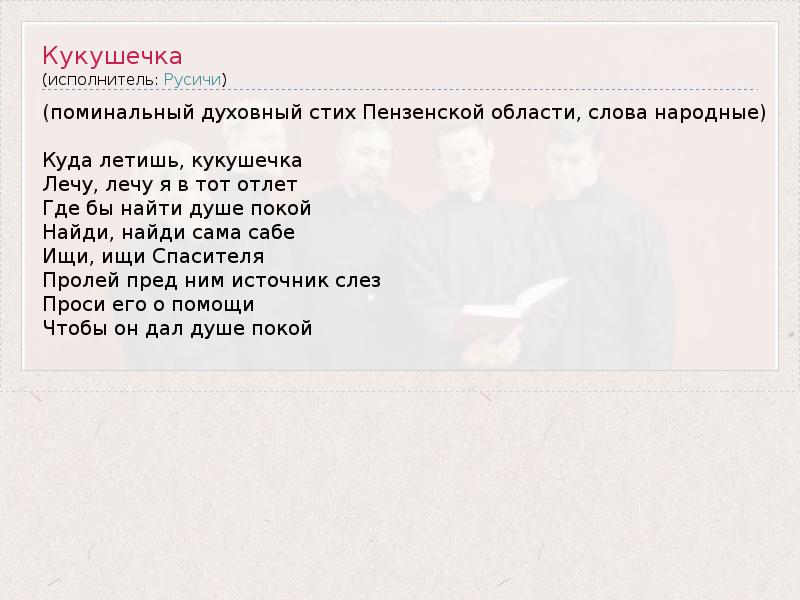 А как ты думаешь, о чем песня "Кукушечка" ?