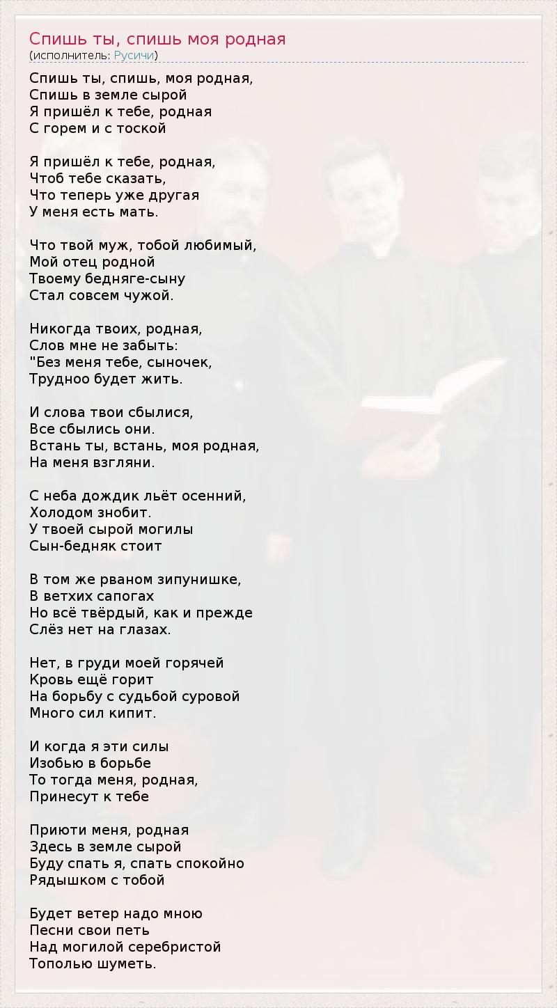 ГлавнаяИсполнителиРусичиСпишь ты, спишь моя родная