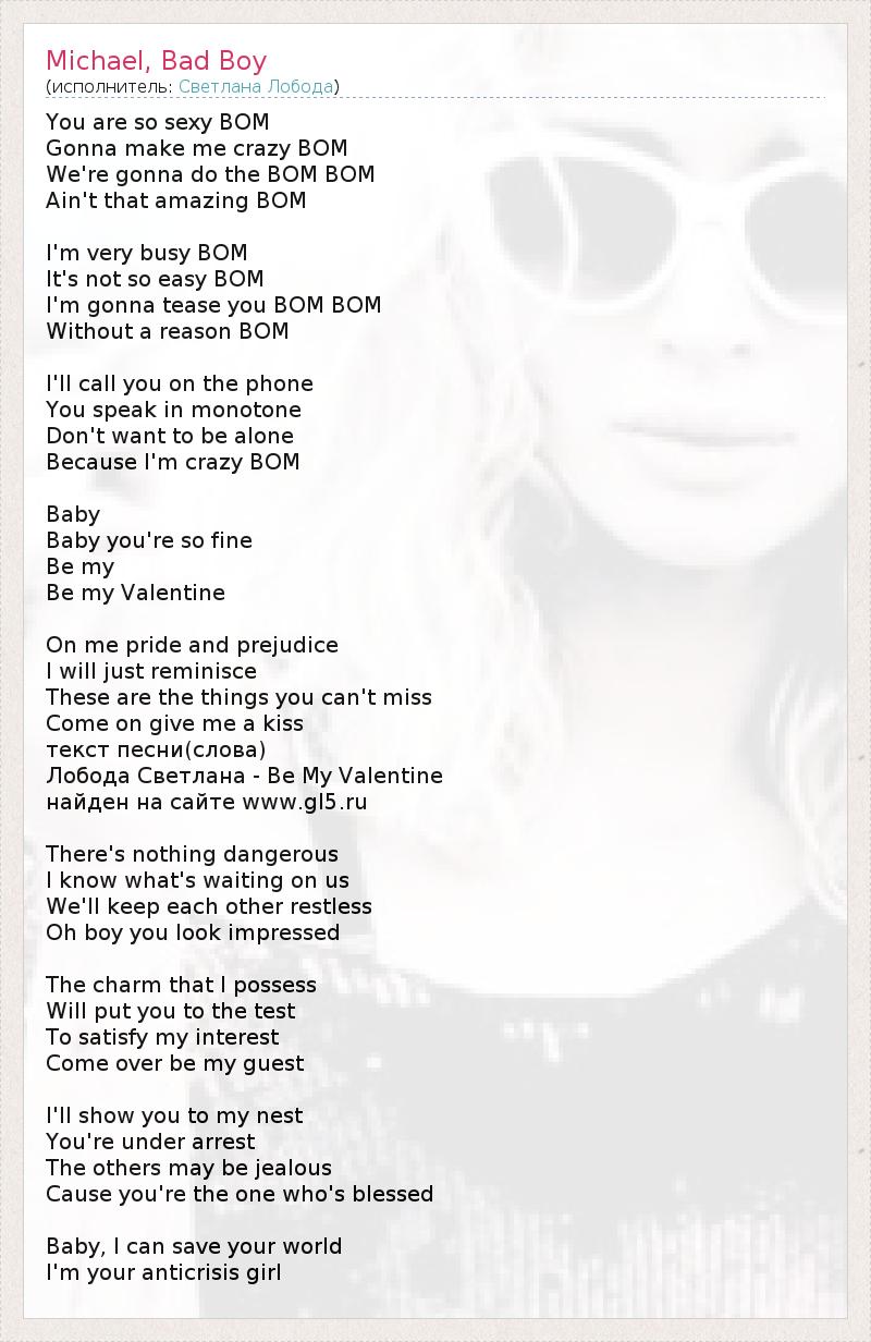 А как ты думаешь, о чем песня "Michael, Bad Boy" ?