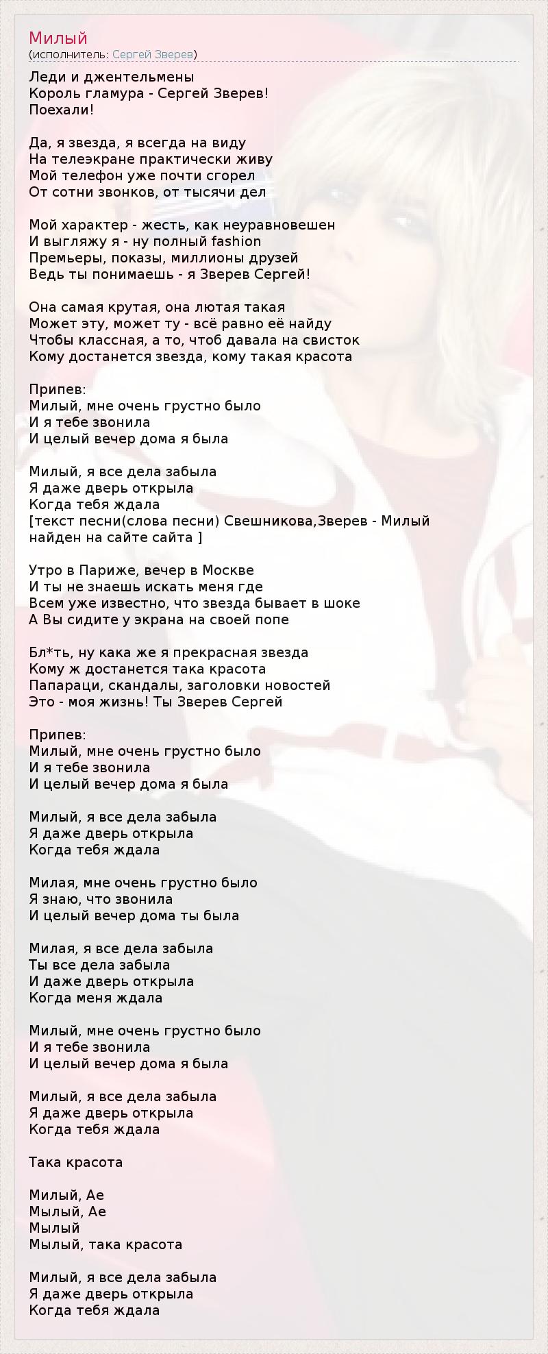 [текст песни(слова песни) Свешникова,Зверев - Милый