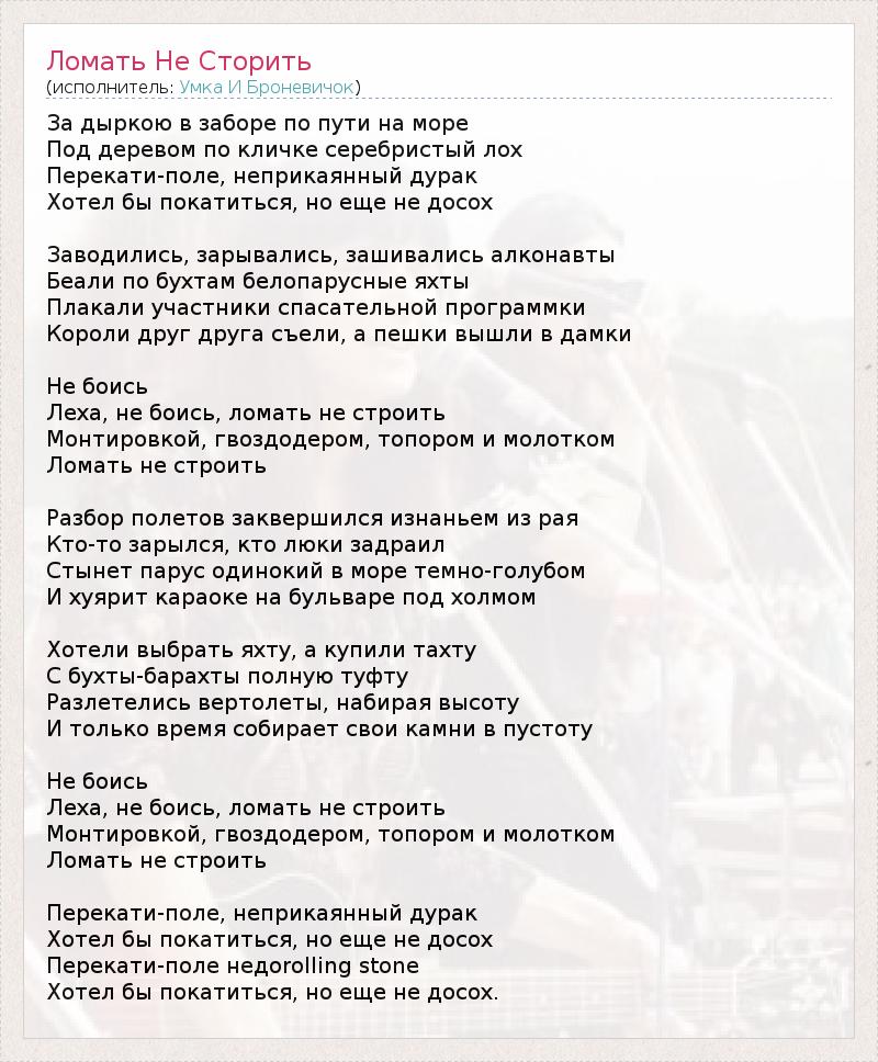 А как ты думаешь, о чем песня "Ломать Не Сторить" ?