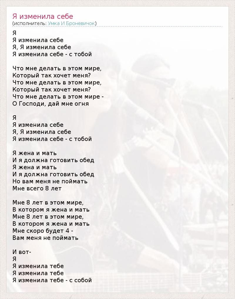А как ты думаешь, о чем песня "Я изменила себе" ?