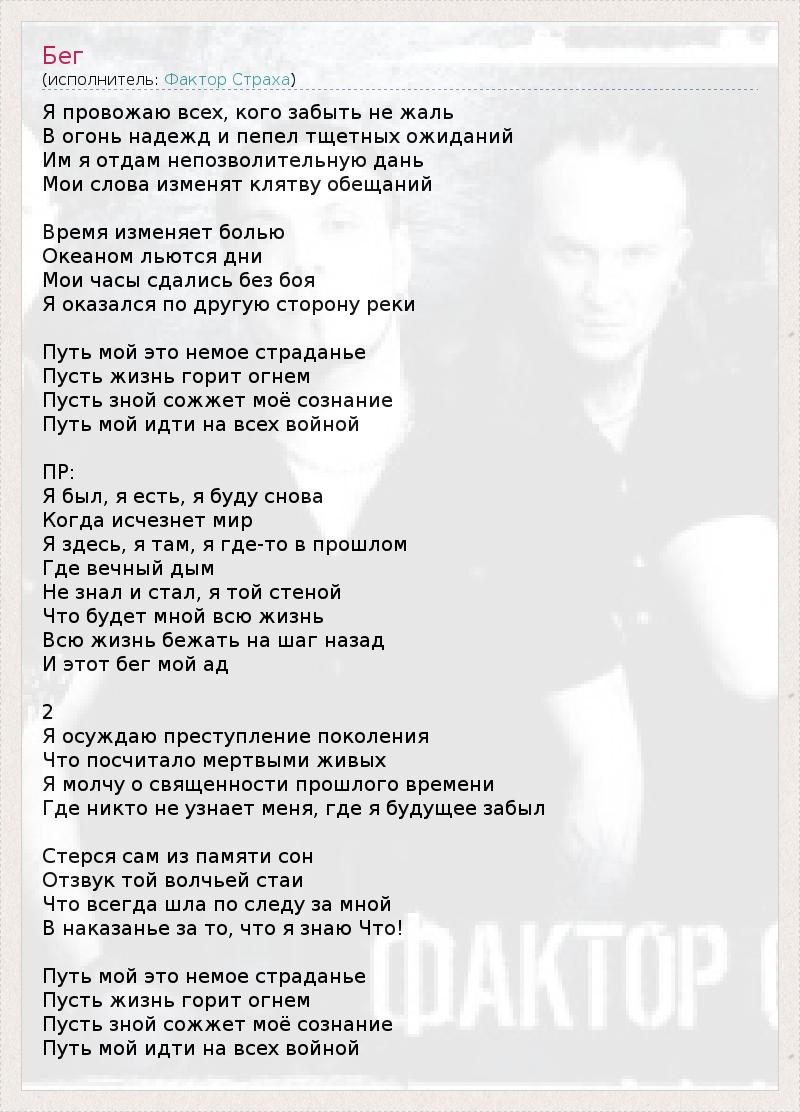 Это интересно:ФАКТОР СТРАХА как коллектив сформировался осенью 2004 года. Участники: Константин "Кот" Селезнев – гитараАлександр "Kuzoff" Кузавов – гитараМихаил Сидоренко – вокал Музыканты знакомы друг с другом больше пятнадцати лет и за это время создали такие группы как: ТРИЗНА, КАРДАННЫЙ ВАЛ, БОНИ НЕМ, ФАКТОР СТРАХА и другие. Они вместе и врозь успели, записать и... продолжение
