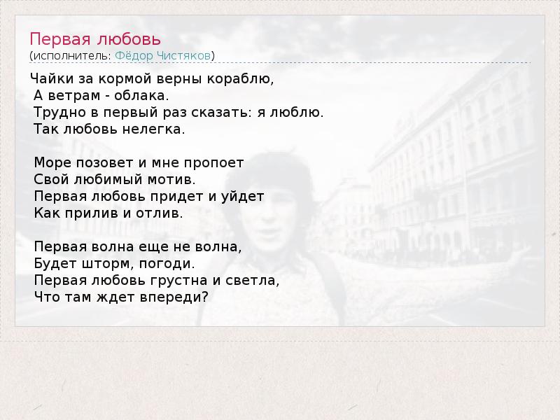 А как ты думаешь, о чем песня "Первая любовь" ?