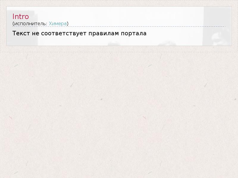 Это интересно:ХимерА (http://www.lastfm.ru/music/ХимерА) – верное название металлической группы. Если текущий исполнитель появляется в твоих чартах, пожалуйста, сделай себе и Last.fm пользу. Исправь теги в своих медиафайлах. Спасибо.=== Биография ===Питерская группа “Химера” начала свое существование как “Депутат балтики”, которую создали осенью 1990 года Эдуард Старков... продолжение