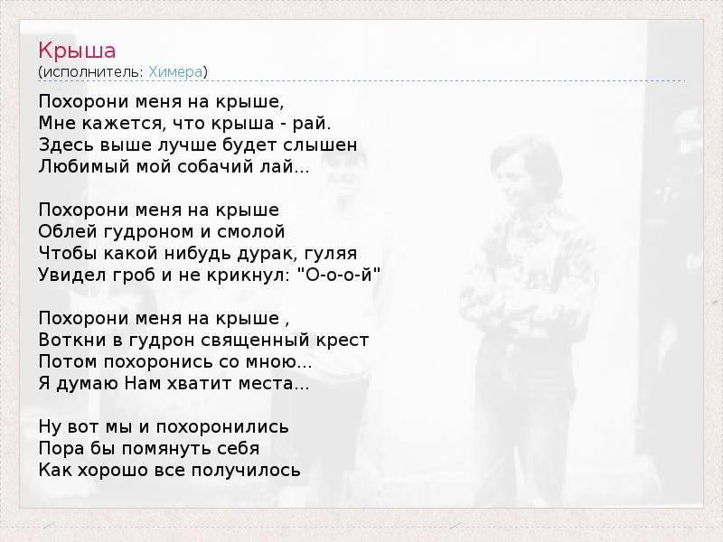 Это интересно:ХимерА (http://www.lastfm.ru/music/ХимерА) – верное название металлической группы. Если текущий исполнитель появляется в твоих чартах, пожалуйста, сделай себе и Last.fm пользу. Исправь теги в своих медиафайлах. Спасибо.=== Биография ===Питерская группа “Химера” начала свое существование как “Депутат балтики”, которую создали осенью 1990 года Эдуард Старков... продолжение