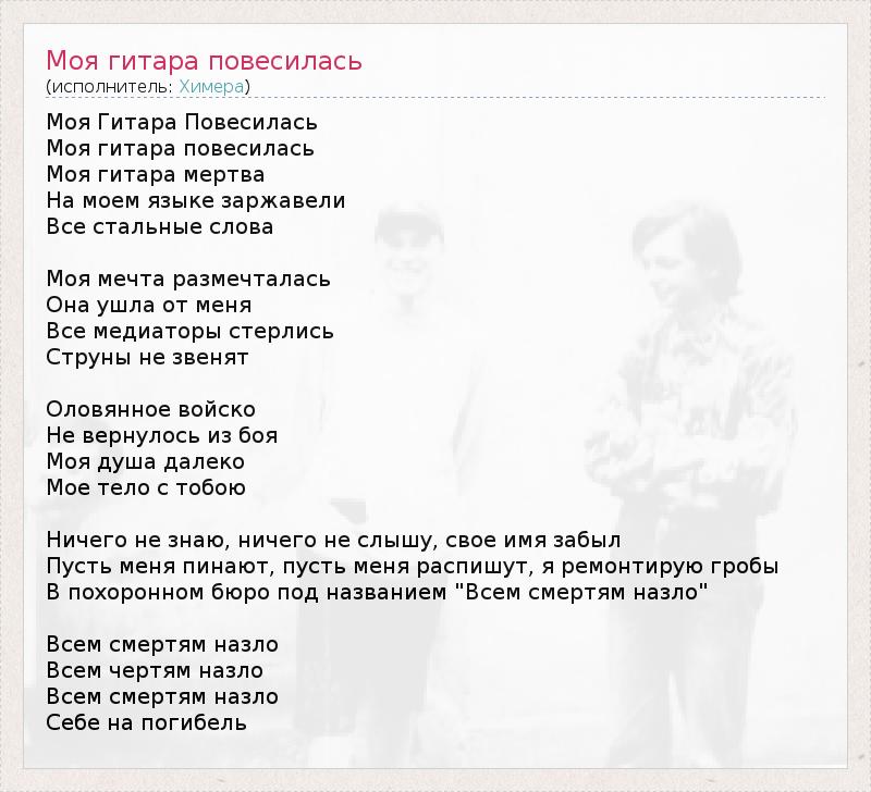 ГлавнаяИсполнителиХимераМоя гитара повесилась