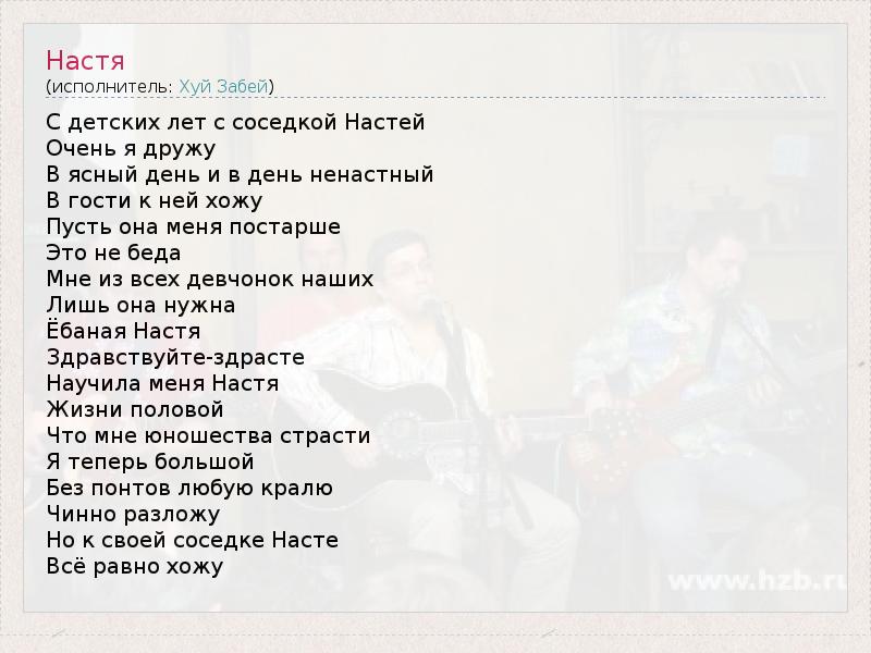 А как ты думаешь, о чем песня "Настя" ?
