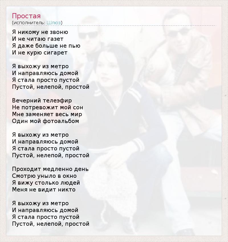 Это интересно:Группа «Шлюз» была основана осенью 1999 года в Москве. В первоначальный состав входили: Аксана Цветы - вокал, Александр Усачёв - гитара, Владислав Тарасов - бас-гитара, Алексей Смирнов - ударные, Владислав Дашкевич - труба, Александр Кузнецов - тромбон.В том же году группа выпускает дебютный альбом «Гады» на независимом лейбле (в 2000 он был переиздан фирмой грамзаписи Фили/FeeLee Record Company).В... продолжение