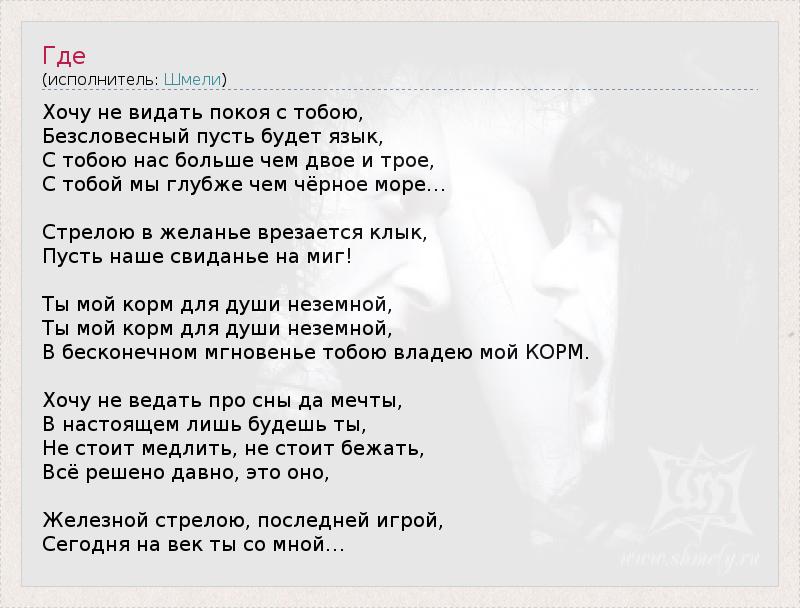 Это интересно:После различных проектов Шмеля и Лёса сама собой родилась группа Шмели (где-то в 1993 году). Сами Александр Шмелёв (Шмель) и Лёля Заседателева (Лёс) не выбирали себе этого названия, просто, несмотря на все предыдущие проекты, эту безумную парочку, независимо от собираемых ими составов и нововведений в своём, так называемом творчестве, все называли их одним словом "Шмели". Не смотря на... продолжение