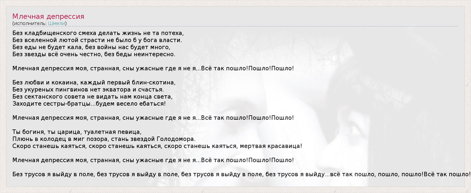 ГлавнаяИсполнителиШмелиМлечная депрессия