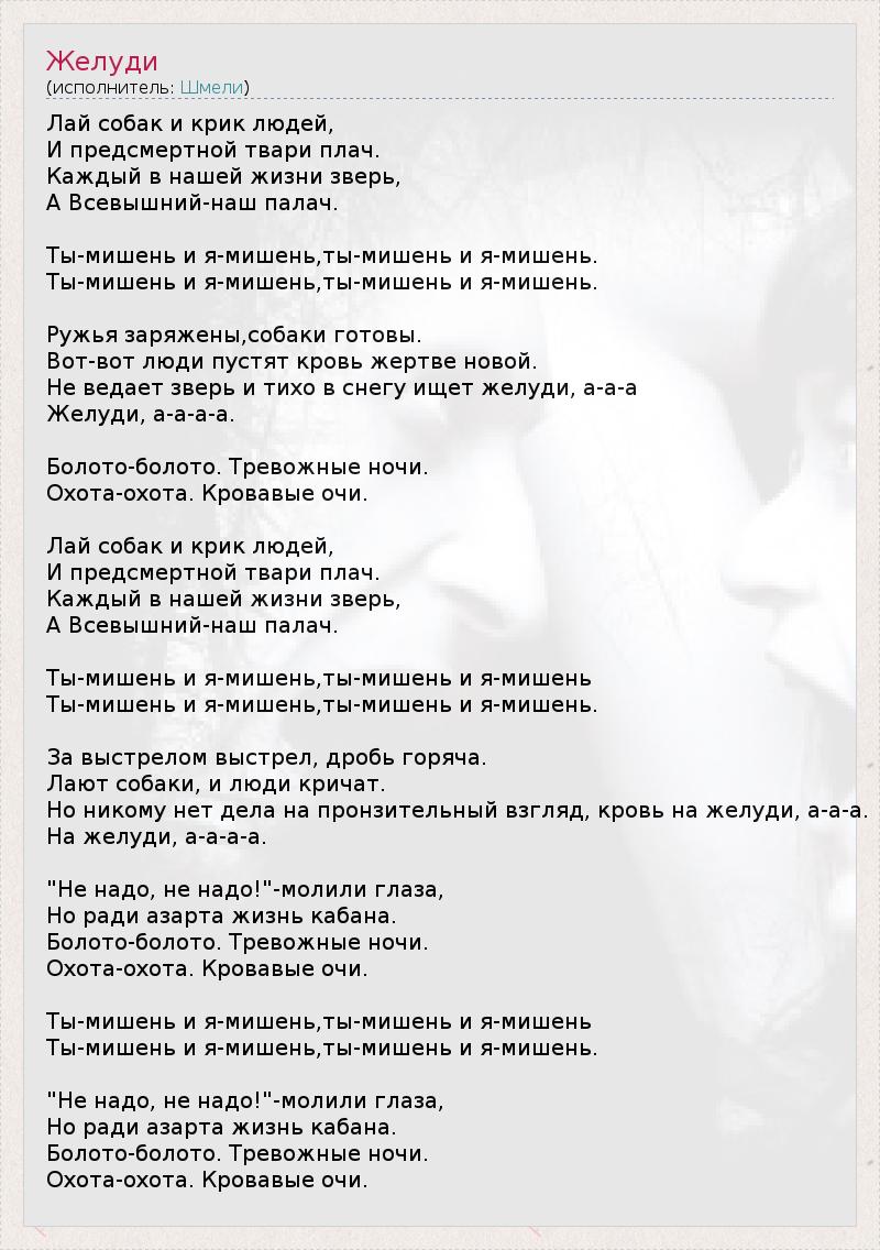 Но никому нет дела на пронзительный взгляд, кровь на желуди, а-а-а.