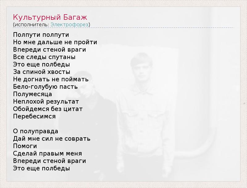 ГлавнаяИсполнителиЭлектрофорезКультурный Багаж