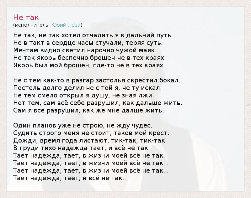 Это интересно:Лоза, Юрий Эдуардович - певец, поэт и композитор.Родился 1 февраля 1954 года в Свердловске в семье служащих: отец — инженер-конструктор, мать — бухгалтер. Когда Юрию исполнилось семь лет, семья переехала в Алма-Ату. В 13 лет стал играть на гитаре. После окончания школы Лоза поступил в Казахский государственный университет, но бросил учебу и ушел в армию.После службы в армии поступил... продолжение
