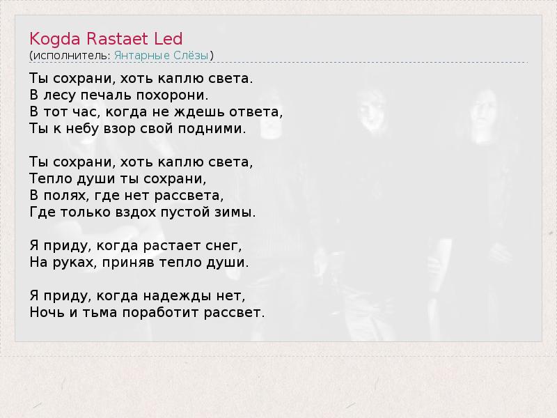 А как ты думаешь, о чем песня "Kogda Rastaet Led" ?