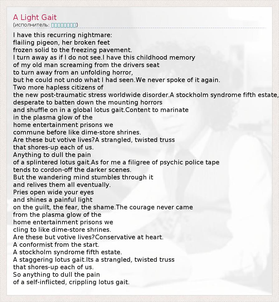 А как ты думаешь, о чем песня "A Light Gait" ?