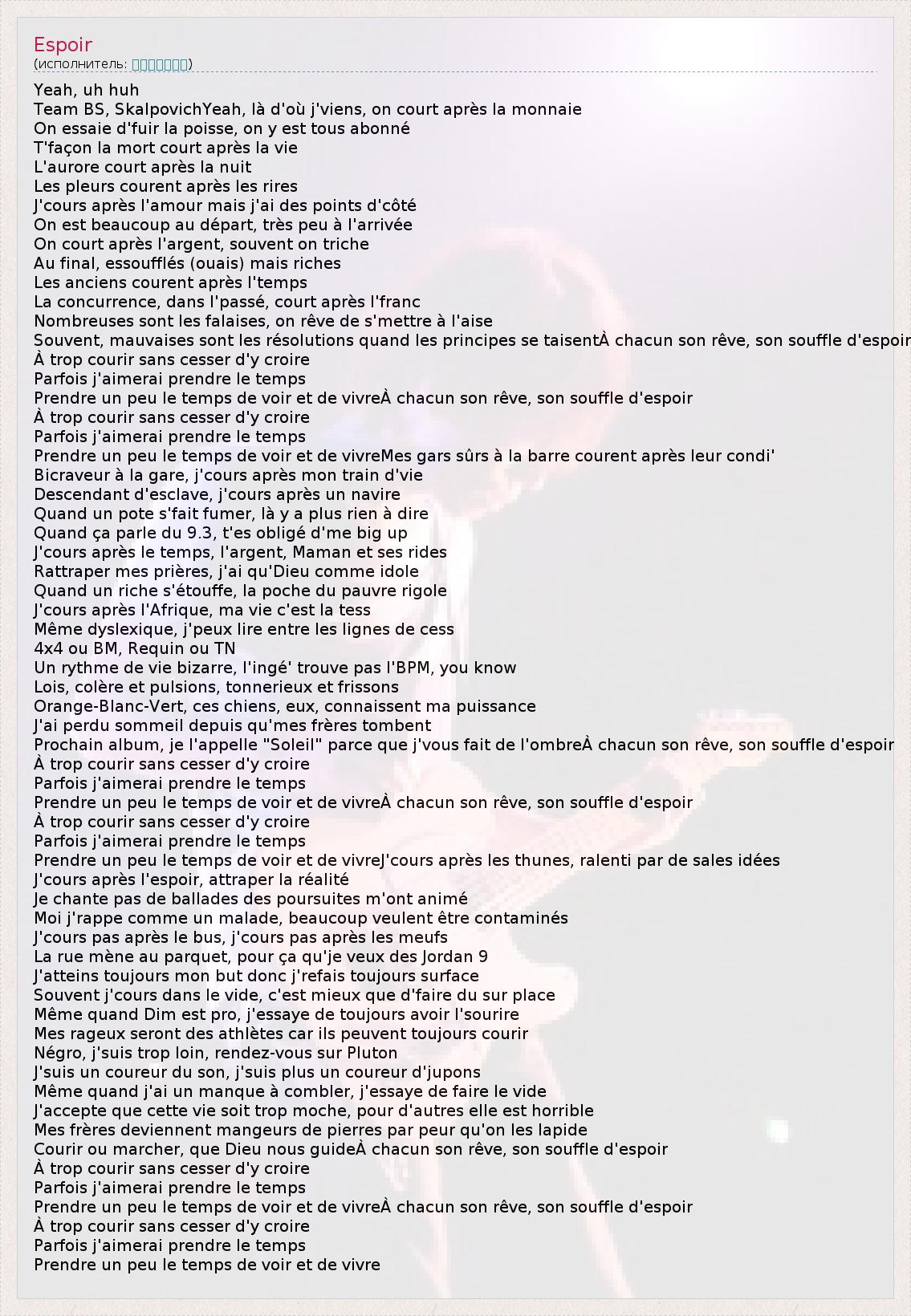 А как ты думаешь, о чем песня "Espoir" ?