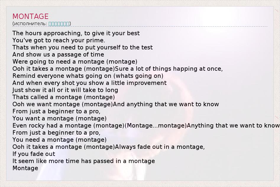 А как ты думаешь, о чем песня "MONTAGE" ?