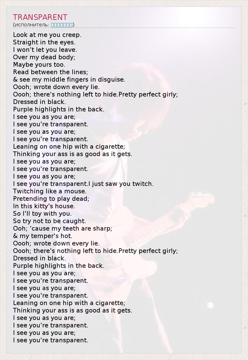 А как ты думаешь, о чем песня "TRANSPARENT" ?