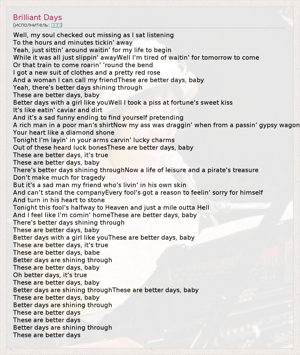 А как ты думаешь, о чем песня "Brilliant Days" ?