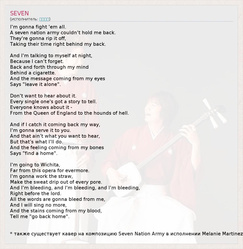 * также существует кавер на композицию Seven Nation Army в исполнении Melanie Martinez