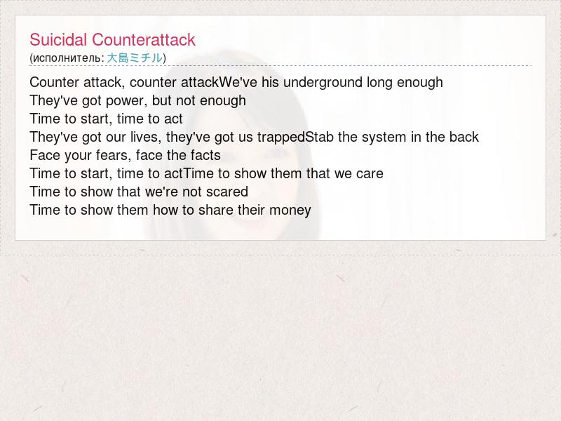 А как ты думаешь, о чем песня "Suicidal Counterattack" ?