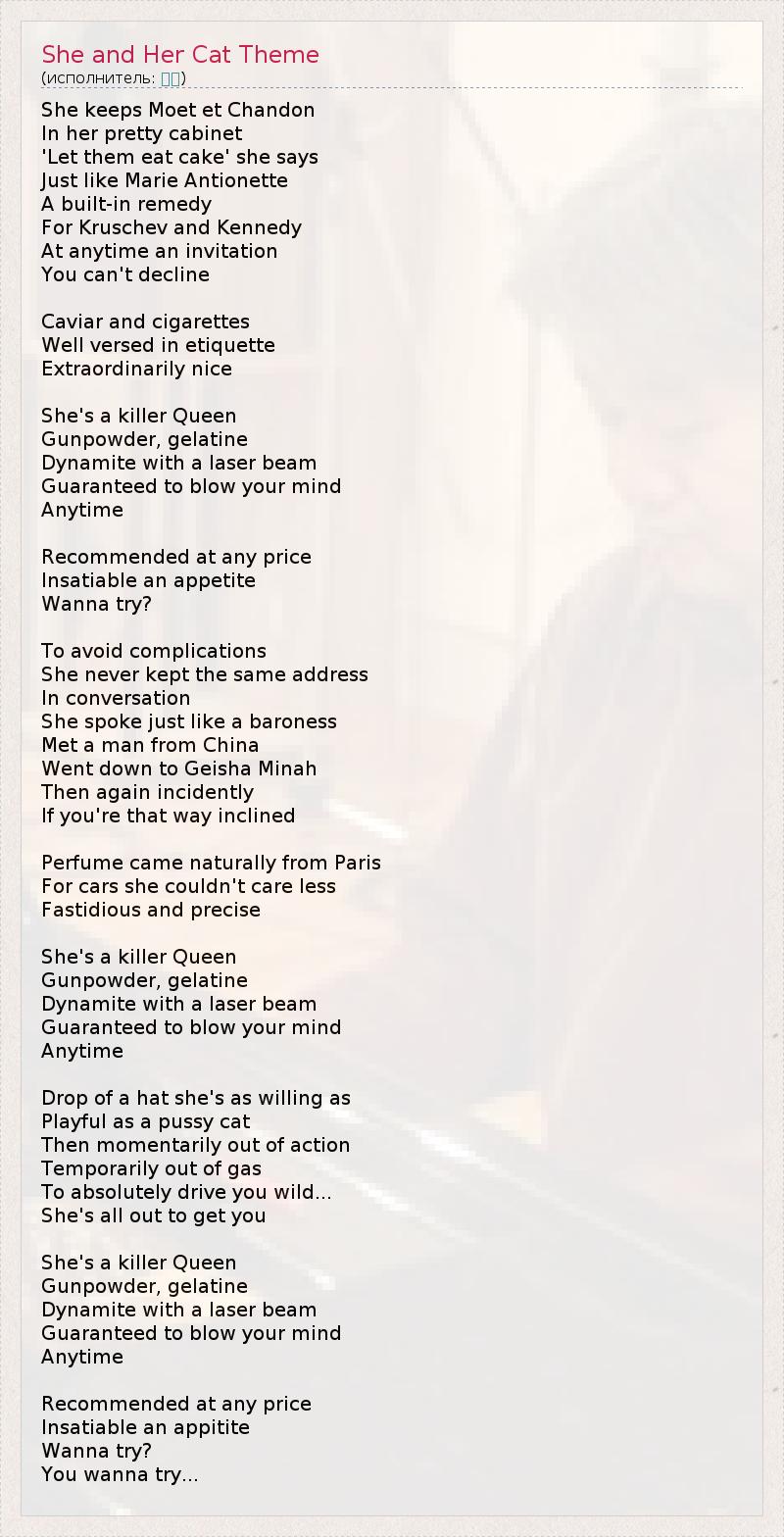 А как ты думаешь, о чем песня "She and Her Cat Theme" ?