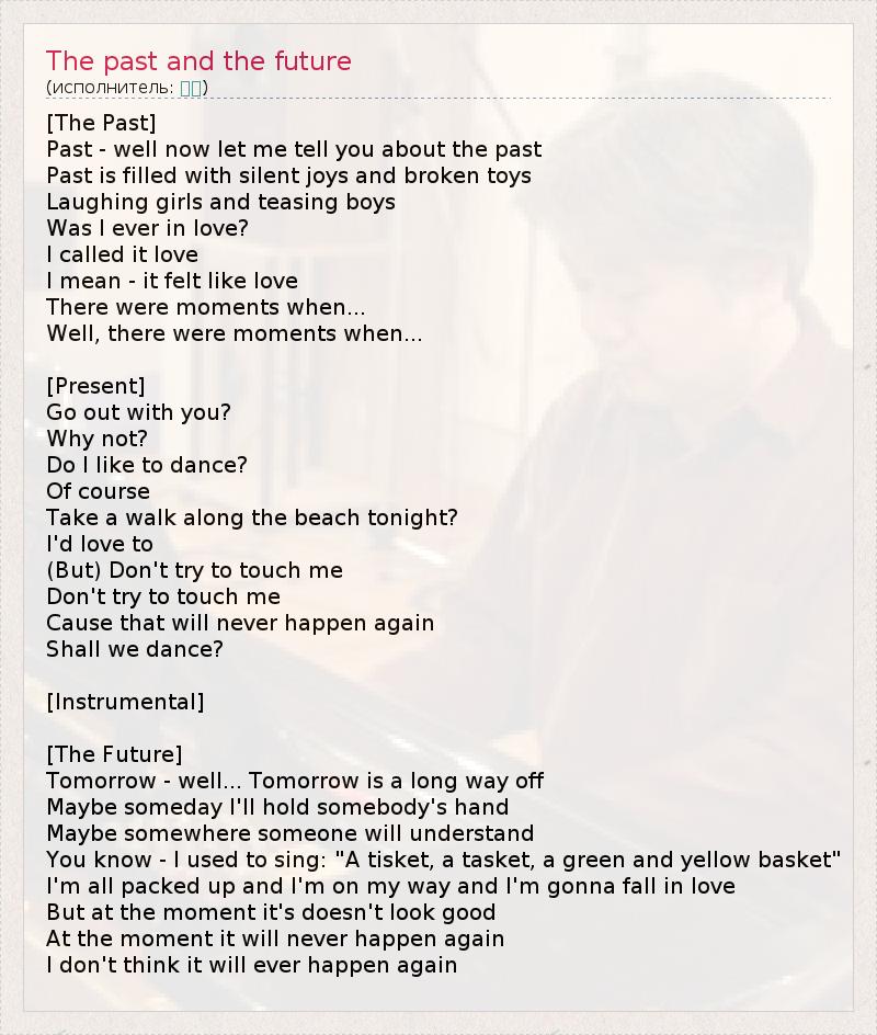 La Gelosia (с текстом перевода)  Продолжение медитации на энергии  Доставляет!(текст)  Голуби. ...Там, там, высоко...  Виноград (Минус)  Weekend!(текст)  Порушка-Параня  Там где  True Love (полная версия текста)  Hijo de la luna