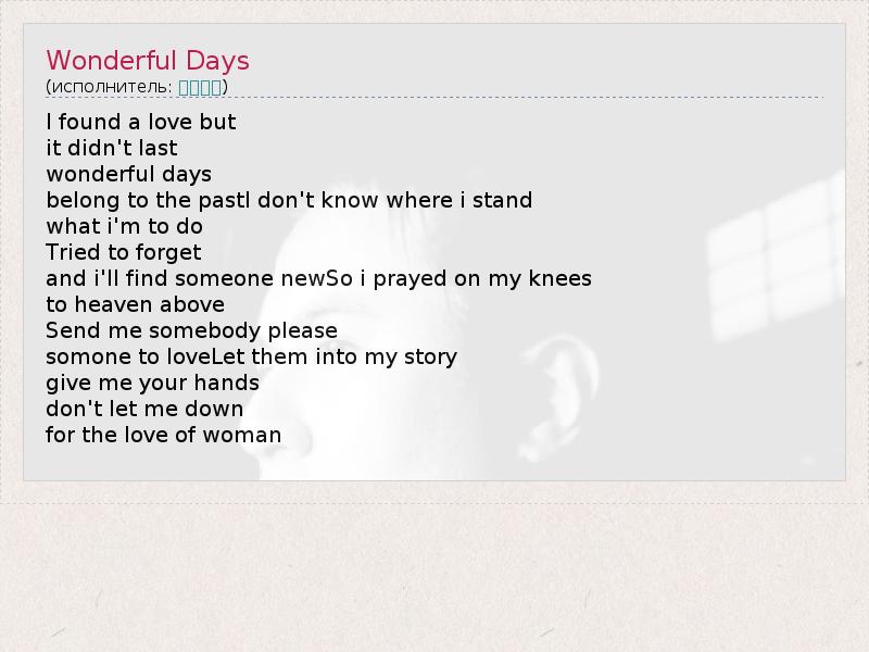 А как ты думаешь, о чем песня "Wonderful Days" ?