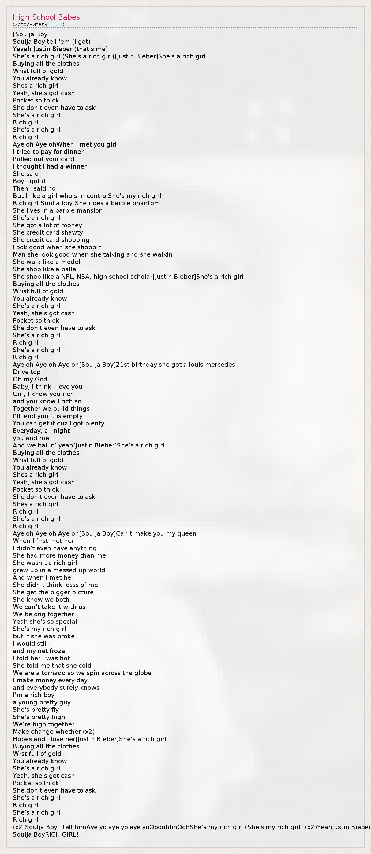 (x2)Soulja Boy I tell himAye yo aye yo aye yoOooohhhOohShe's my rich girl (She's my rich girl) (x2)YeahJustin Bieber