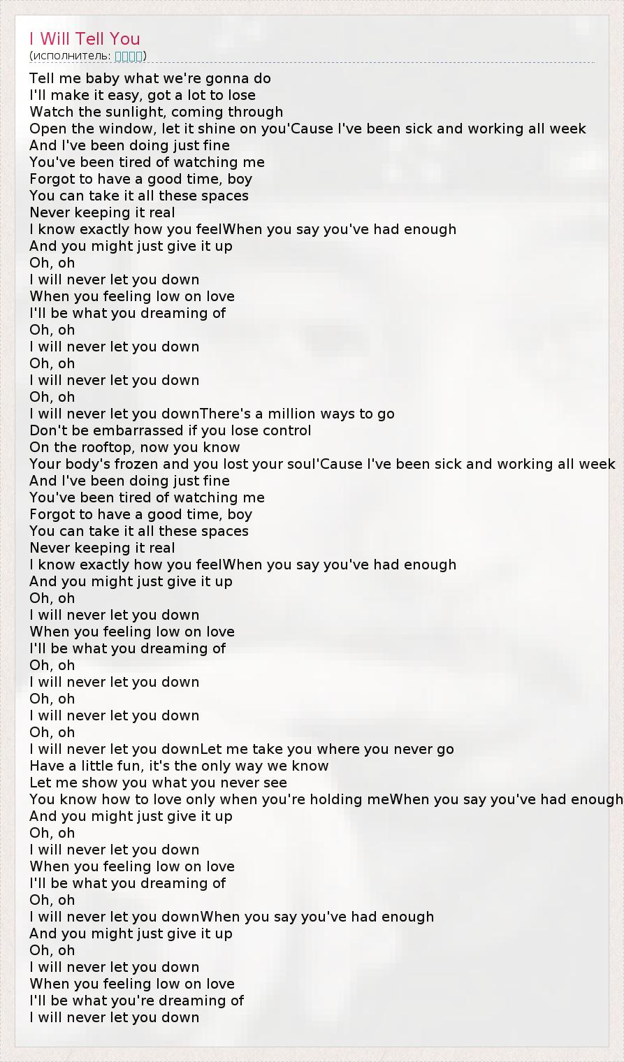 А как ты думаешь, о чем песня "I Will Tell You" ?