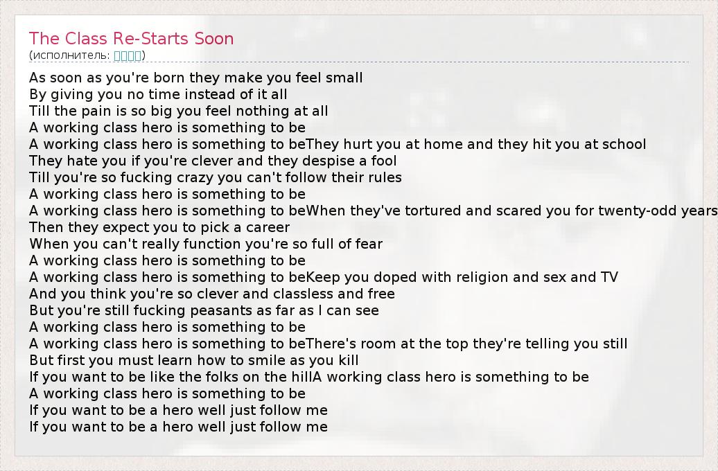 А как ты думаешь, о чем песня "The Class Re-Starts Soon" ?