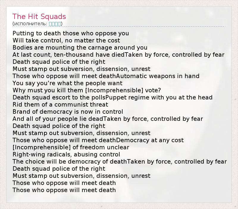 А как ты думаешь, о чем песня "The Hit Squads" ?