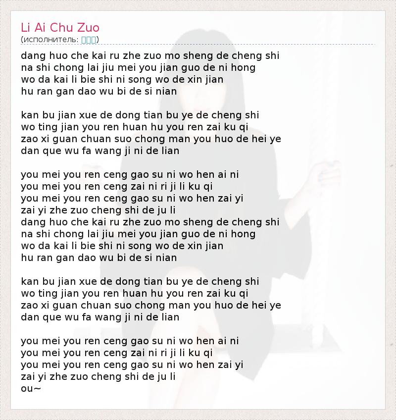 А как ты думаешь, о чем песня "Li Ai Chu Zuo" ?