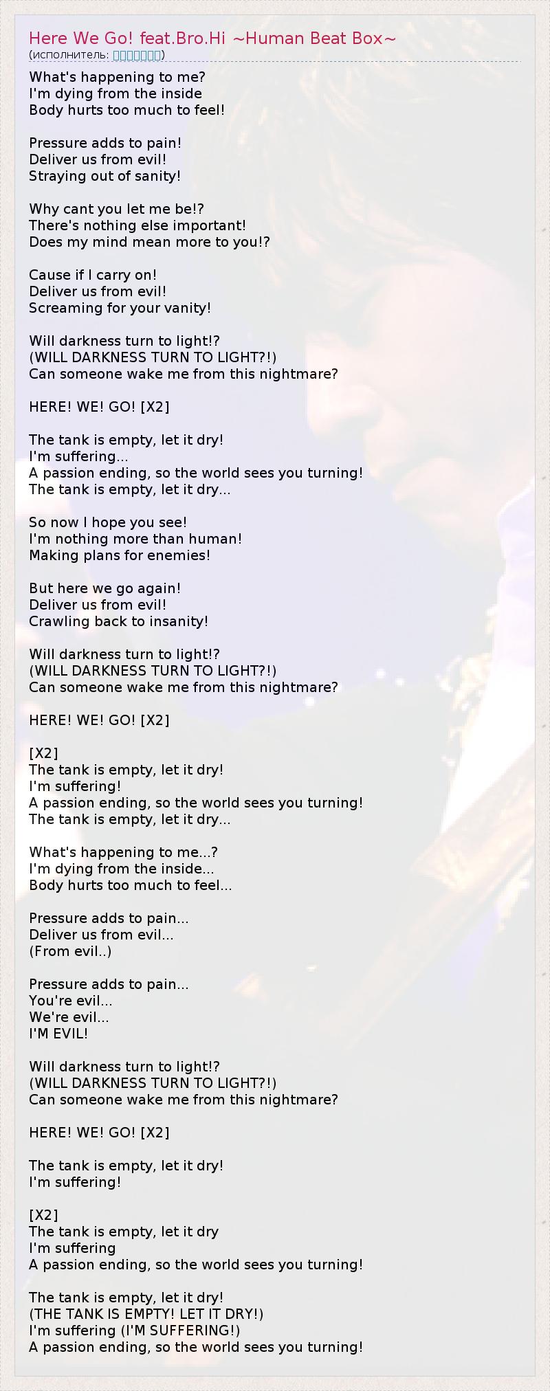 А как ты думаешь, о чем песня "Here We Go! feat.Bro.Hi ~Human Beat Box~" ?