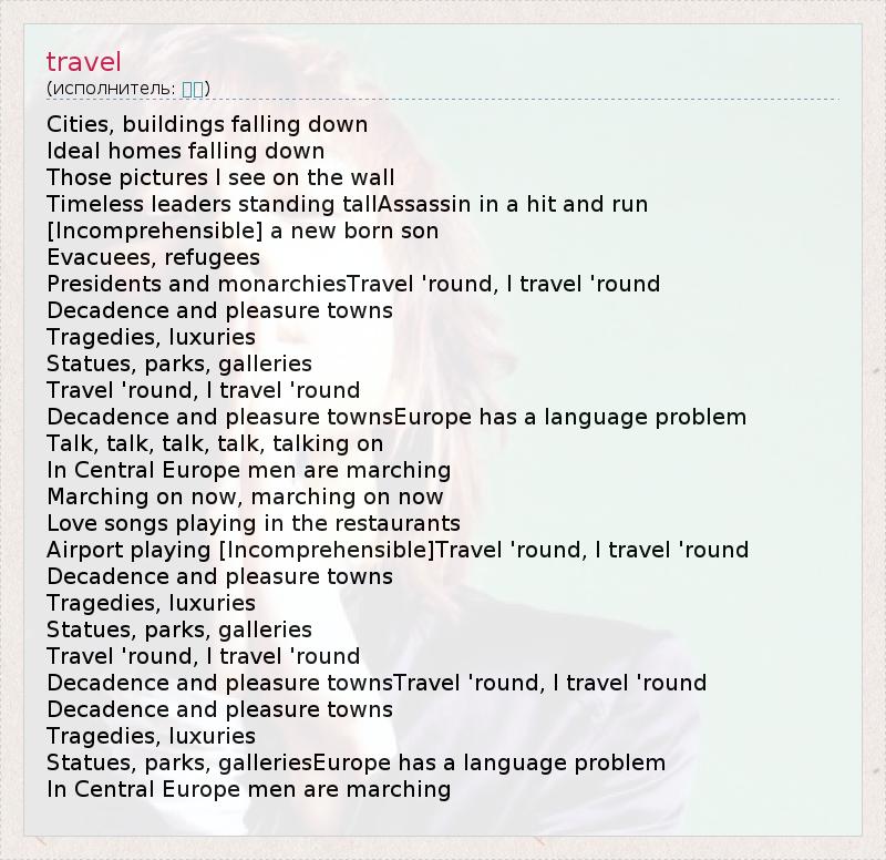 Airport playing [Incomprehensible]Travel 'round, I travel 'round