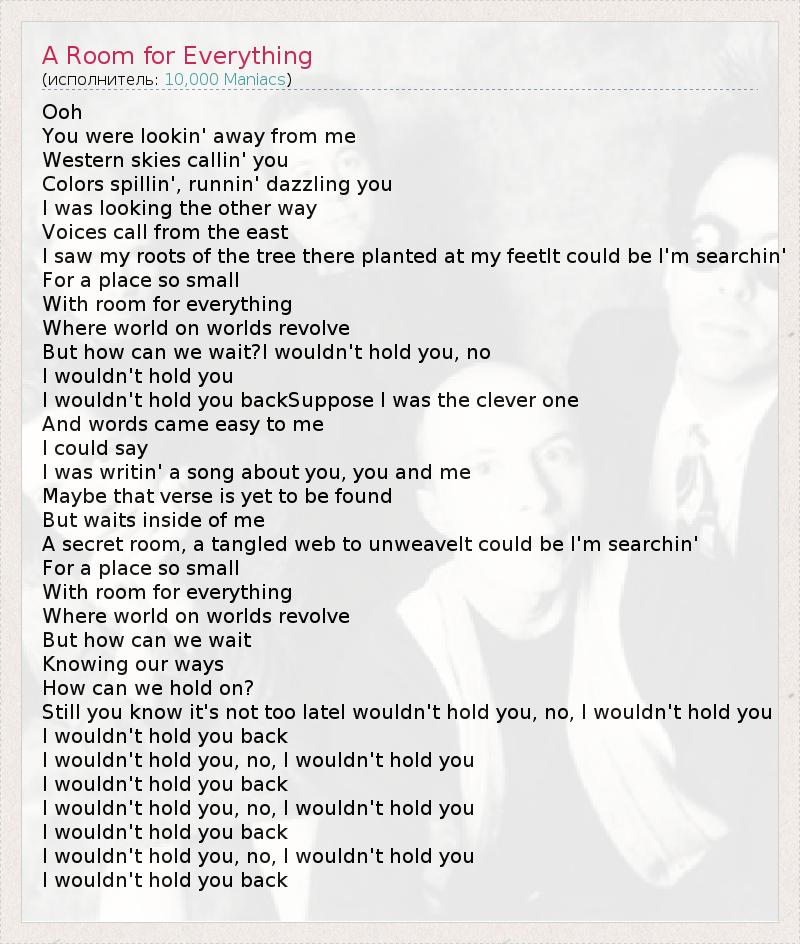 А как ты думаешь, о чем песня "A Room for Everything" ?