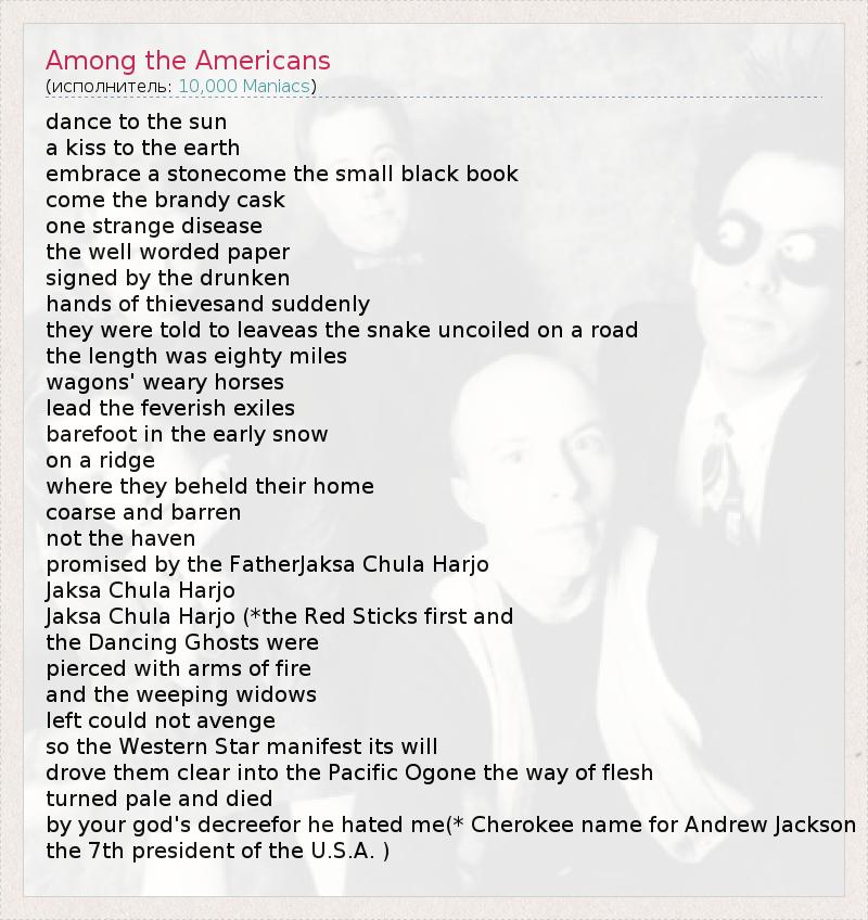 А как ты думаешь, о чем песня "Among the Americans" ?